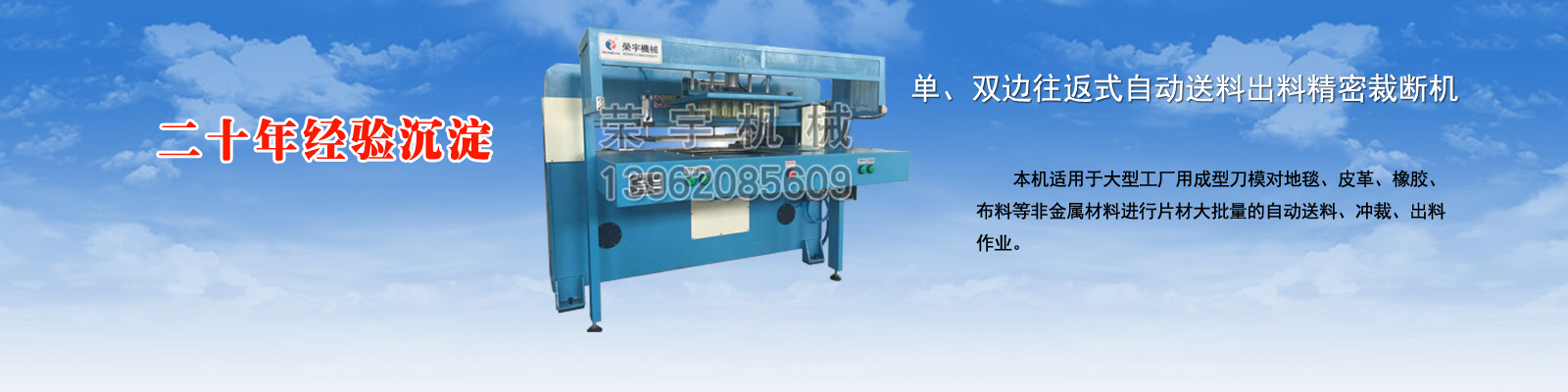 盐城荣宇机械有限公司座落在美丽富饶的黄海之滨—盐城,是我国皮革、制鞋、橡塑、箱包、手套、体育用品、汽车用品、服装等行业用裁断、下料、切条、拉布铺布、压花复合机械专业研制生产的企业。